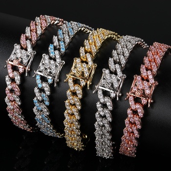 Hot Sale 8mm kubanische Glieder kette Bunte blau-rosa Legierung schmuck mit Zirkonia für Partys Bordstein kubanische Großhandel Männer Frauen
