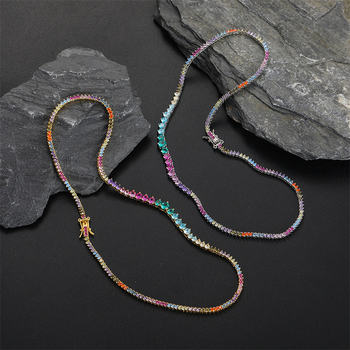 INS Fashion Personality Vergoldetes Kupfer eingelegt Bunte Zirkon Farbverlauf Tennis Kette Halskette für Frauen