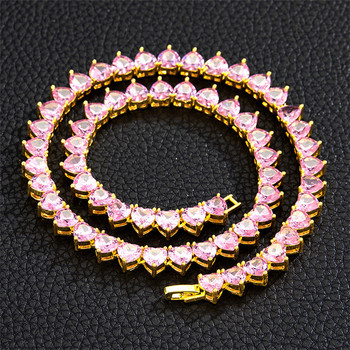 8MM Hip Hop Zirkon Pfirsich Herz Iced Out Zirkon Halskette Modetrend Herzförmige Tennis kette