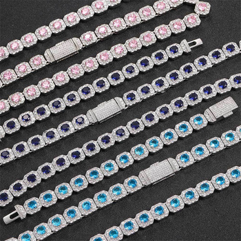 Venda quente 8mm Cuban Link Chain Colorido Azul Rosa Liga Jóias com Zircônia Cúbica para Festas Curb Cuban Wholesale Men Women