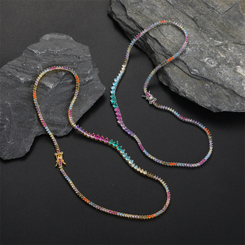 Corrente de tênis incrustada, corrente colorida de liga de zircão 4mm, gargantilha, corrente cubana, joias da moda, atacado