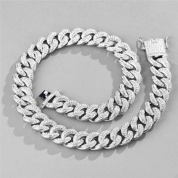 Chuỗi Mắt Xích Cuba 15Mm Phong Cách Hip Hop Trang Sức Thời Trang Đính Kim Cương Giả Lấp Lánh Bán Sỉ